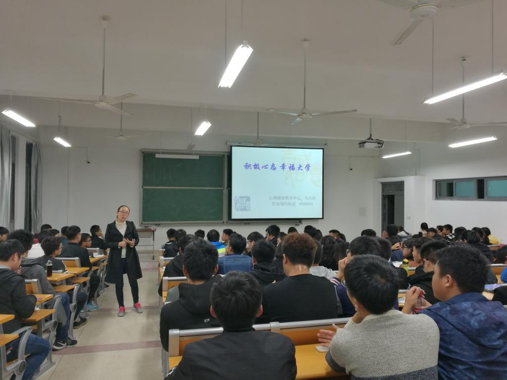 为帮助2017级新生尽快适应大学生活,建立健康平和的良好心态, 11月8日晚,力学与光电物理学院邀请学生处大学生心理健康教育中心马庆玲老师,在天工南306室为2017级新生作了题为《积极心态 幸福大学》的心理健康讲座。
