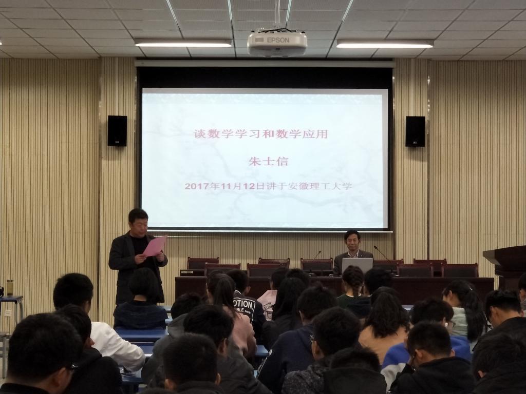 11月12日下午,校百川大讲堂又开讲了,数学与大数据学院邀请国家教学名师、合肥工业大学数学学院院长朱士信教授在数学与大数据学院报告厅作题为《谈数学学习与数学应用》的讲座。此次讲座由数学与大数据学院党委书记赵前进主持。学院领导、辅导员以及全体2017级新生参加了讲座。