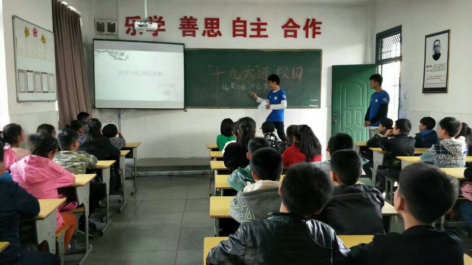 为深入学习贯彻落实十九大精神,11月10日下午,数学与大数据学院2015、2016、2017级学生干部走进田家庵第六小学开展十九大精神主题宣传教育活动。