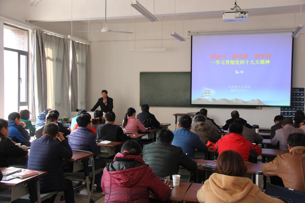 11月20日下午,马克思主义学院副院长、校习近平新时代中国特色社会主义思想研究中心副主任孙功教授应邀为后勤保障部作题为《新时代 新思想 新征程 十九大报告解读》的专题辅导报告。部党委书记秦朗、部长张勤春及其他班子成员参加了报告会。报告会由副部长崔峰主持。