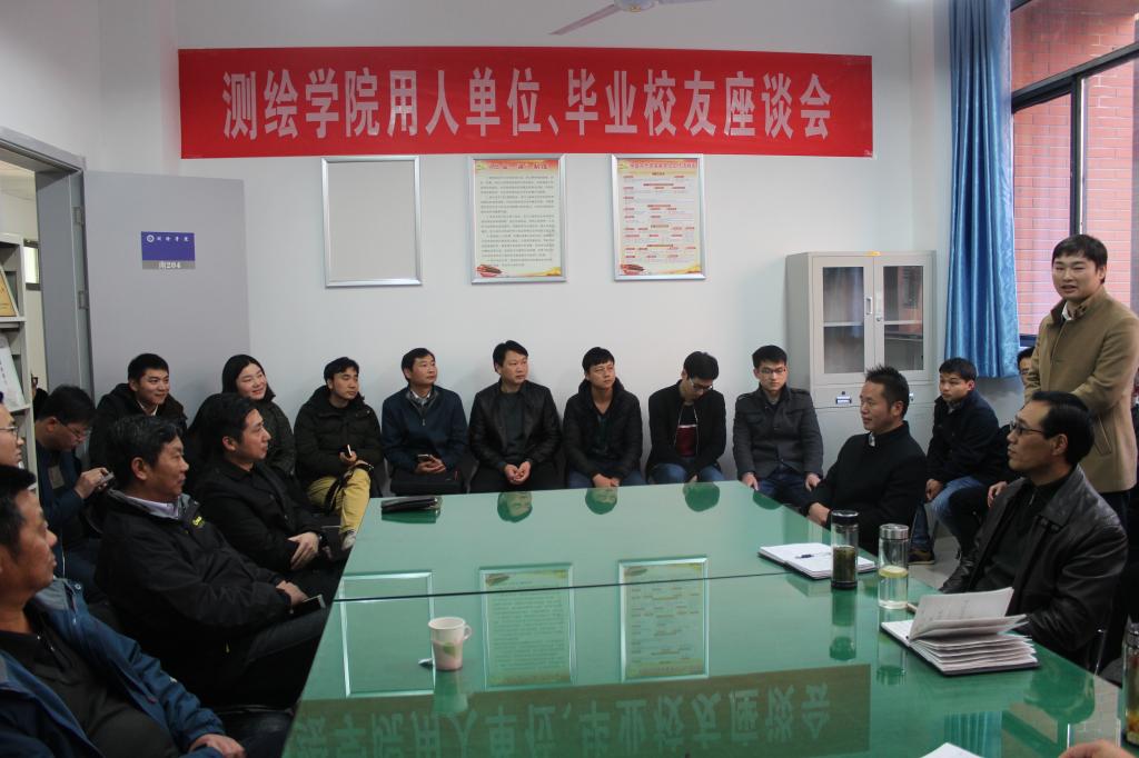 11月20日下午,测绘学院邀请部分用人单位代表和校友在学院二楼会议室召开座谈会。北京21世纪科技信息公司人力资源部主任丁媛、合肥市测绘设计研究院副院长刘家祥、中海达合肥分公司总经理邾凯、蚌埠市城市规划局勘测设计研究院院长王保国等10家用人单位代表和淮南规划设计研究院副院长岳超、中交二航局第四工程公司周海生、浙江省煤田地质局第二勘探队副队长朱农等25位在安徽周边工作的校友代表应邀参加了座谈。座谈会由院党委书记吴军主持。