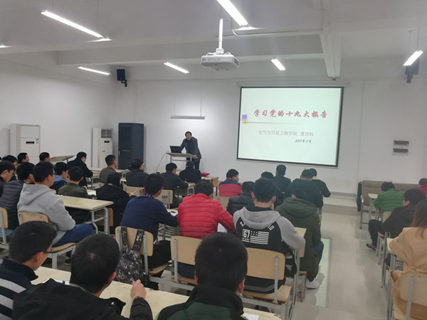21日下午,学院党委书记夏邦权为全体党员作了题为《学习十九大新党章、争做合格党员》专题报告。夏邦权分析了新党章修订的背景及重大意义,回顾了党章建设的历程,详细解读了十九大新党章新修订的内容,要求全体党员认真学习十九大报告和党的“根本大法”,将学习贯彻融入到学习、生活中,做一名遵守党章的合格党员。院长李敬兆为全体党员作了题为《坚定理想信念、争做优秀党员》专题报告。李敬兆从信仰的内涵和意义讲起,分析了作为共产党员应当坚定理想信念的重要性,提出了实现共产主义理想和个人价值相统一的具体要求,希望全体党员不忘初心,时刻牢记党的根本宗旨,立足岗位以实际行动争做合格党员。