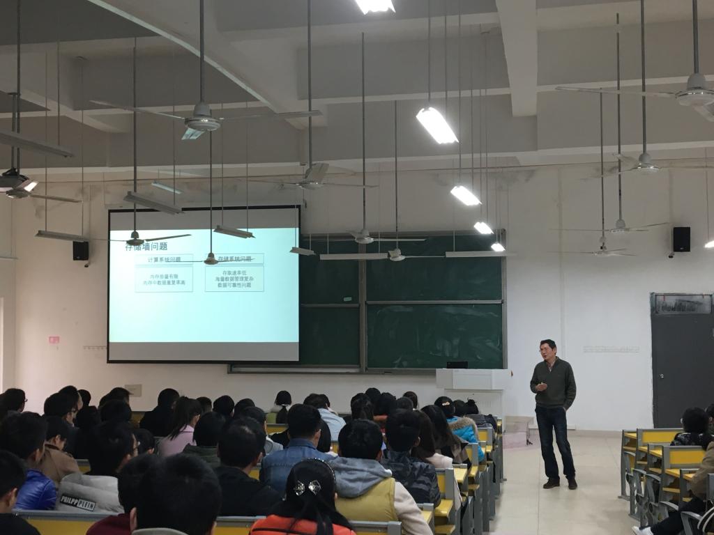 11月24日下午,应校科技产业处、计算机科学与工程学院邀请,中国科学技术大学计算机学院副院长、国家高性能计算中心(合肥)常务副主任许胤龙教授在明理104教室做了题为《存储墙与内存管理优化》的学术报告。报告会由计算机科学与工程学院副院长方贤进主持。来自计算机学院及其他有关学院约160名教师、研究生、本科生聆听了报告。