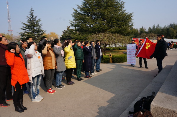 在台儿庄大战纪念馆的纪念广场,全体党员举起右手,面对着鲜红的党旗进行了庄严的宣誓,重温了入党誓词。在讲解员的介绍下,大家了解了台儿庄大战的起因、经过、中日参战军力对比、伤亡情况、战斗中涌现的英勇将士的感人事迹和战争取得胜利的重大历史意义。那段振奋人心的历史,李宗仁、张自忠、孙连仲等一个个刻骨铭心的名字也深深印在了大家的心中。大家边看边听,缅怀革命先烈,接受红色洗礼。
