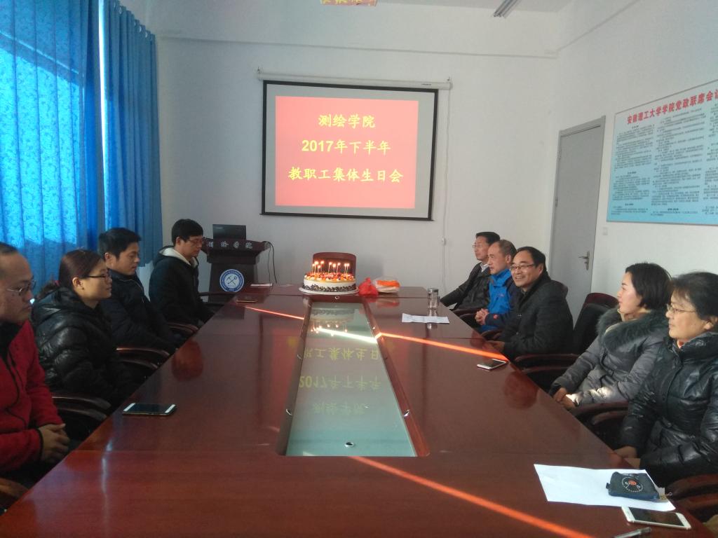 为了使教职工感受学院集体大家庭的温暖,加强教师之间的交流和沟通,12月8日下午,测绘学院在学院楼南511会议室为9月到12月生日的教职工举办了集体生日会。生日会由副院长、学院分工会主席姚嗣宏主持。