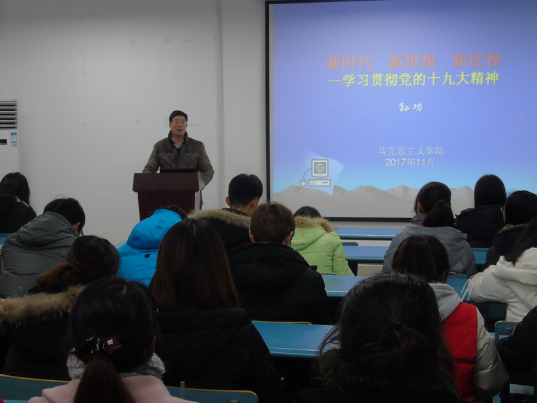 12月15日下午,应外国语学院邀请,学校党的十九大精神宣讲团成员、马克思主义学院副院长孙功教授在崇智楼B235教室作了题为《新时代、新思想、新征程——学习贯彻党的十九大精神》的报告会。学院全体党员和部分入党积极分子听取了报告。