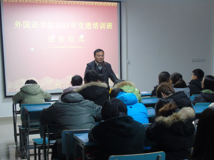 12月15日下午,外国语学院2017年党建培训班结业仪式在崇智楼B235教室举行。学院全体师生党员82人参加结业仪式。