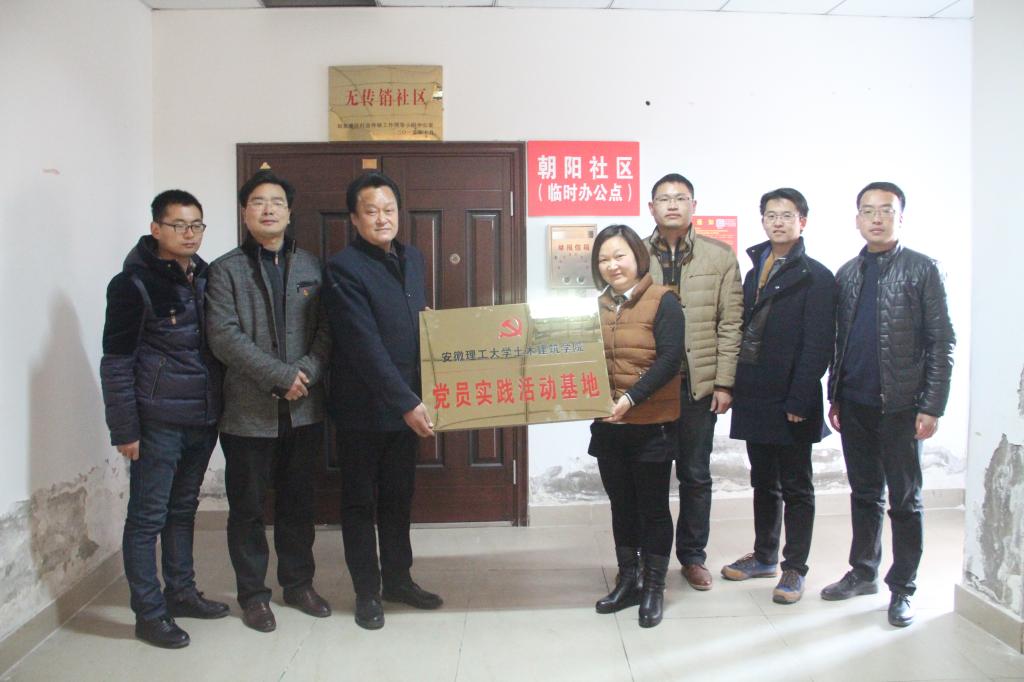 12月21日,土木建筑学院党委书记盛真、党委副书记丁志强带领学生党支部书记、辅导员一行7人,赴田家庵区朝阳社区,亲切看望并慰问了社区工作人员,同时在社区挂牌成立“安徽理工大学土木建筑学院党员实践活动基地”。