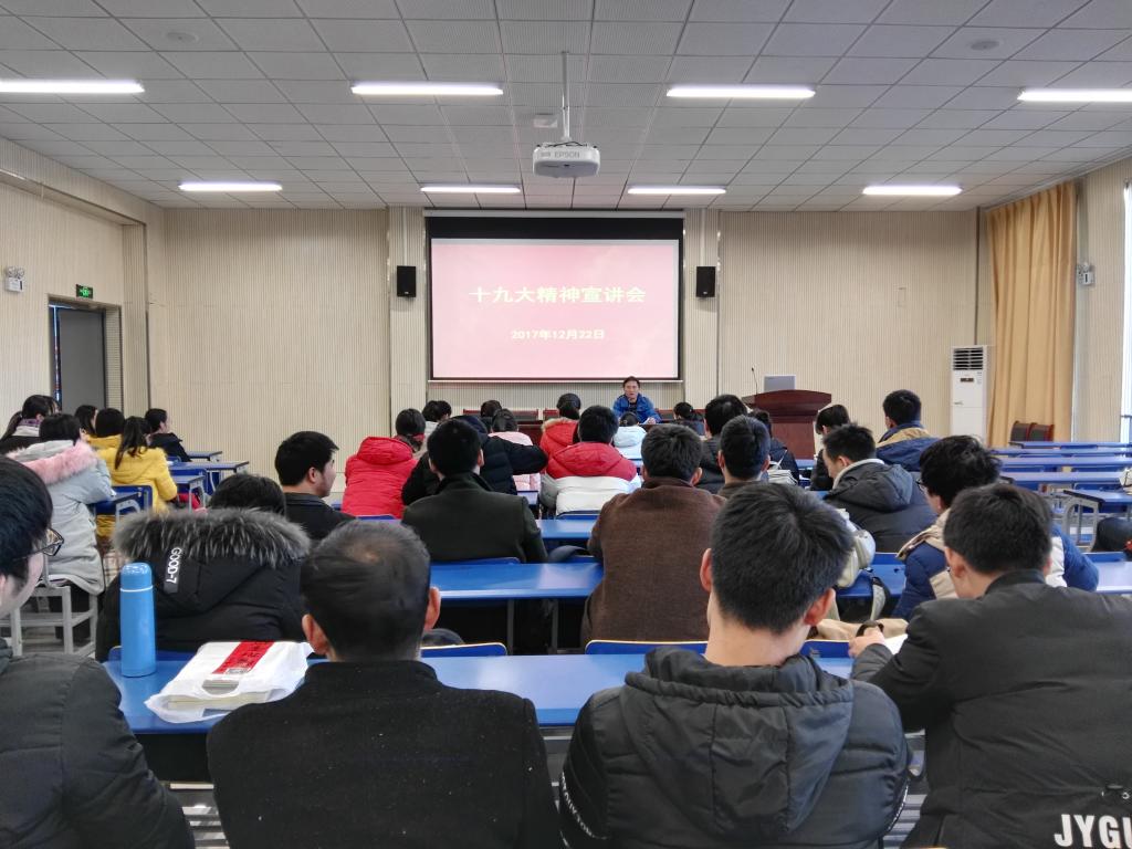 12月22日,根据校学工部下发关于在全体大学生中深入学习宣传党的十九大精神的通知要求,数大学院开展了党的十九大精神学习宣讲会。会议由院党委副书记李勇主持,2014级全体在校同学参加宣讲会。