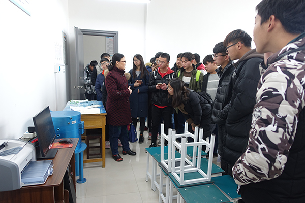 座谈会后,同学们在班主任的带领下参观了非金属专业实验室。