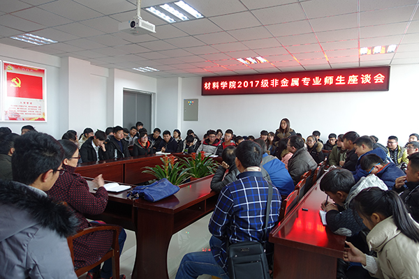 12月27日下午,材料科学与工程学院于崇义楼B306会议室举办2017级无机非金属材料工程专业师生座谈会。座谈会由无机非金属材料工程系主任王庆平主持。学院党委副书记范洪喜、非金属专业教师应邀出席。学院2017级非金属专业全体同学参加了本次座谈会。