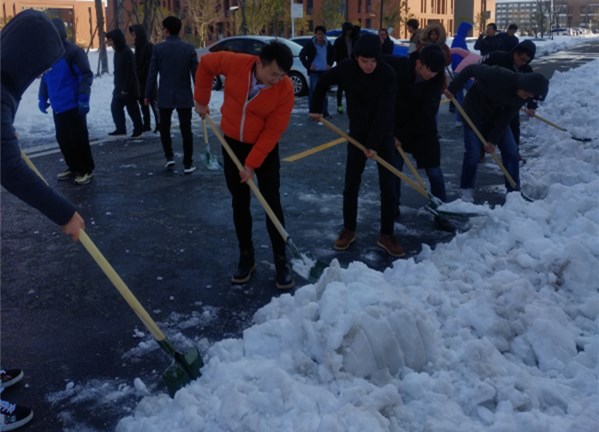 1月5日、8日,机械工程学院开展“党员活动日”扫雪活动。学院党委书记张安宁、院长王传礼等院领导同支部书记、辅导员及师生党员一起参加了活动。