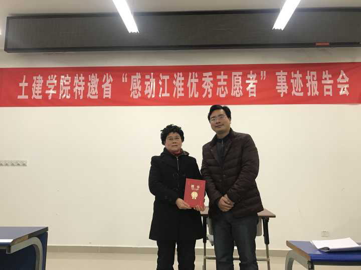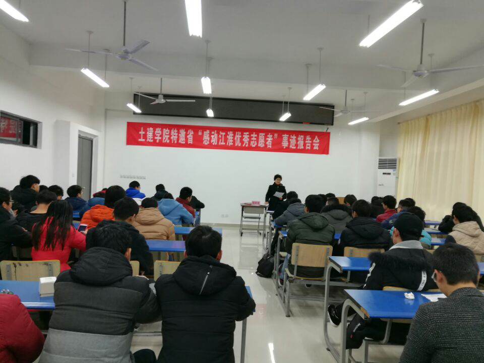 1月18日上午,土木学院求是楼南227教室座无虚席,第十届“全国五好文明家庭”和“省优秀巾帼家庭志愿者队伍”成员代表,省“感动江淮优秀志愿者”、“首届淮南好人”、淮南市“学英”城管志愿者服务队队长陈学英应邀与学院大学生暖心关爱困难“劳模好人”志愿服务队全体志愿者、学生党员代表和学生干部代表“零距离”接触,宣讲青年志愿服务精神。学院党委副书记丁志强等参加报告会。报告会由学院大学生暖心关爱困难“劳模好人”志愿服务队队长、2016级辅导员任少伟主持。