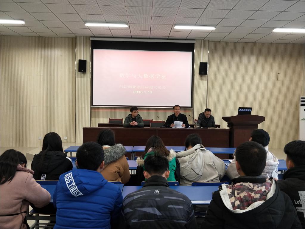 1月19日下午,数学与大数据学院2018年大学生创新创业训练计划项目申报动员会在学院学术报告厅举行,副院长李德权主持会议。