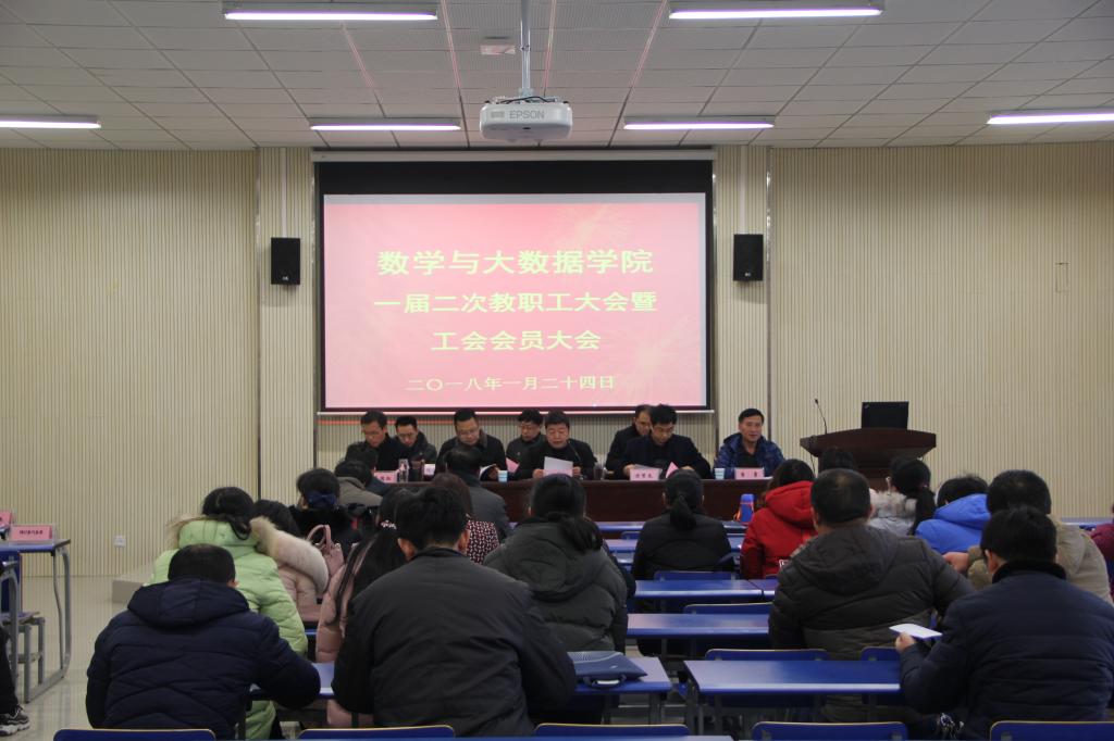 1月24日,数学与大数据学院一届二次教职工大会暨工会会员大会在院学术报告厅隆重召开。大会开幕式由院党委书记赵前进主持。校工会负责人应邀出席大会。全体教职工出席会议,大会还特邀了退休教师、学生代表等列席会议。