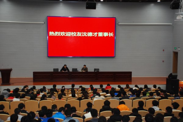 报告会上,沈德才结合自己多年的工作经历,从分析当代年轻人的问题、企业需要什么样的人才、有关成功的实践经验、分析人的主要漏洞以及怎样取得成功等方面作了深刻的阐释,并通过自己的亲身经历,和同学们分享了成功的秘诀,告诫青年学生要学会积极主动,多向优秀的人学习,学会自我反省、独立思考的能力,切实履行责任,找出自己的漏洞并改正,培养自己的情商和智商,积极思考,勇于创新。沈德才结合自己多年的工作经验,毫无保留地向同学们分享了自己的心得体会,同时给同学们提出了宝贵建议,极大鼓舞了同学们的学习热情。沈德才的演讲条理清晰,内容丰富真实,引起了同学们的浓厚兴趣和强烈共鸣,赢得现场阵阵掌声。