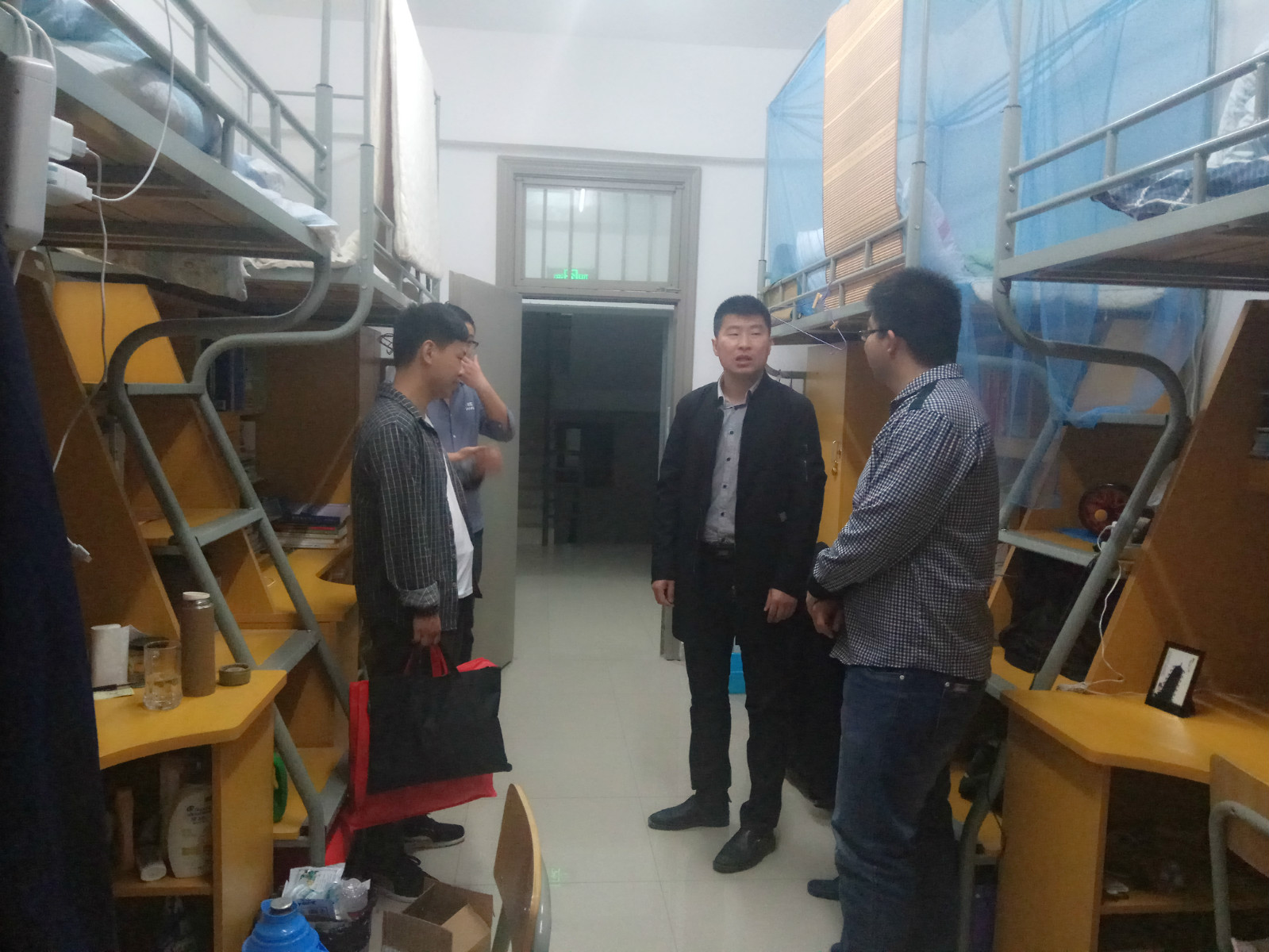 4月1日晚,学院党委副书记(兼副院长)张旸带领全体辅导员深入学生寝室排查安全隐患,重点检查宿舍是否存在吸烟、使用违章电器、私拉电线等安全问题,针对存在问题的学生宿舍,提醒学生务必提高安全防范意识,为自己和他人的生命和财产安全负责。