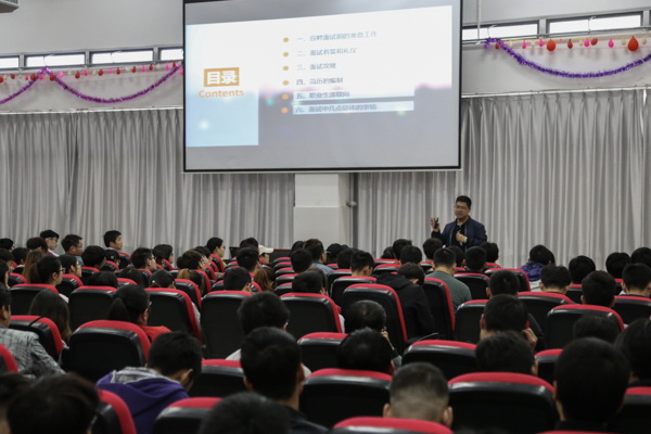 余群建为大家分享了求职当中的两个典型案例,向同学们揭示了性格对个人职业上的成功具有深刻的影响。他从应聘面试前的准备工作、面试着装和礼仪、简历的编制等多个方面对求职大学生必须掌握的面试技巧作了深入浅出的讲解。同时他结合生动的图片和视频,告诫大家做好自己职业的规划,不要做“沙漠里的千里马”,要寻找到自己的草原。同学们表示余群建老师的讲座接地气,干货满满,建议中肯,受益匪浅。