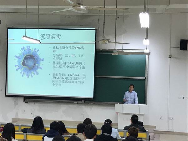 高荣保从流感病毒的病原学、流感病毒的致病机制和个人课题组的研究成果三个方面阐述了我国流感病毒研究现状和最新进展。他还与医学院老师就有关问题进行了积极交流。