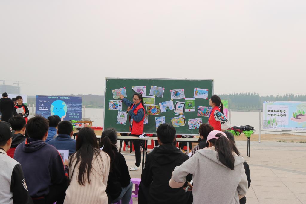上午9点,地环学院50多名大学生科普志愿者在公园湖边广场通过地球科普课堂、主题征文和图片展示、专题展板讲解、签名、发放宣传资料、有奖问答、播放音像资料等多种方式向市民讲述地球故事,普及地球资源、大气环境、水资源保护、地质灾害防治等方面的知识,呼吁市民珍惜地球资源,积极参与节约集约利用资源,从身边的小事做起,践行绿色、低碳生活。活动现场,志愿者们组织小朋友们开展了彩绘地球家园活动,小朋友们在彩绘墙上共同彩绘出心目中的地球。