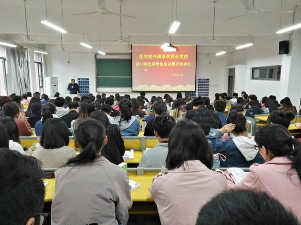 4月14日,医学院、外国语学院分党校第13期发展对象培训班在明理北楼316教室开班。医学院党委副书记(主持工作)刘群红主持开班仪式并讲话。