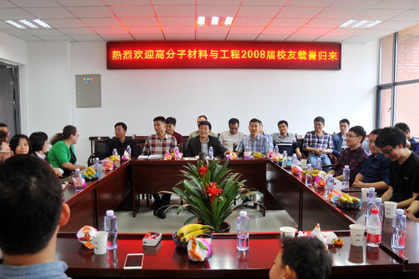 上午,三届校友都返回老校区本部进行了合影留念。下午,高分子材料与工程2008届校友在崇义楼前种下了纪念树,并在B306会议室举行了座谈会。会上,每位返校校友都向领导和原任课教师们汇报了各自的工作情况,同时也表达了大家对母校的良好祝愿。