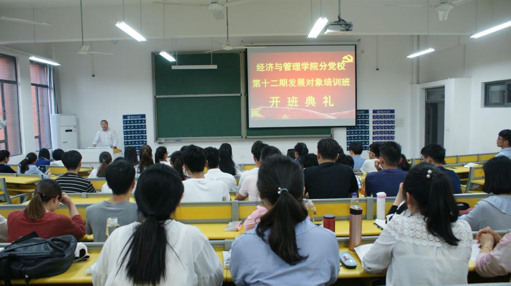 5月3日晚,经济与管理学院分党校第十二期发展对象培训班开班典礼在明理南402教室隆重举行。院党委书记、分党校校长武有水出席开班典礼并讲话。学生党支部书记和培训班全体学员参加了典礼。