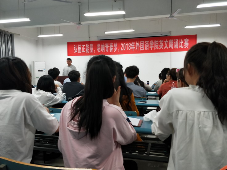 经过前期2016、2017两个年级各班初次选拔,最终共有42名同学入围决赛。近3个小时的比赛中,同学们依次围绕“弘扬正能量,唱响青春梦”这一比赛主题,分别展现了自己对英文朗诵稿件的深度理解,有的同学还给朗诵配上音乐,声情并茂。比赛进一步激发了英语专业低年级学生英语学习的兴趣,也让学生们在比赛中发现自己在英语学习上的提升空间。