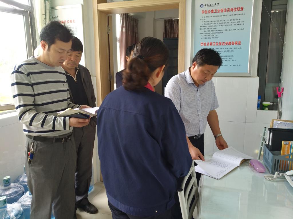 为切实加强学生公寓值班管理,5月24日上午,总务部党委书记曹光保、部长秦朗带队组成2个检查组,深入学生宿舍区对公寓楼日常安全值班情况进行专项检查。