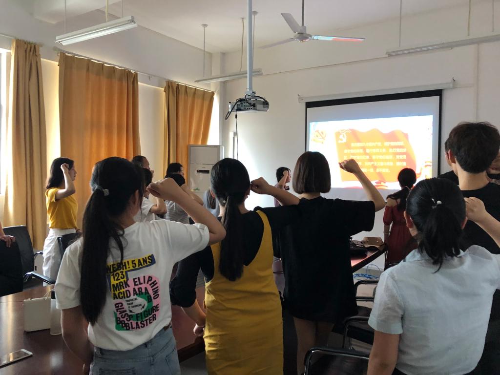 在学院会议室,毕业生党员在学生党员代表孟慧娟的带领下,面向鲜红的党旗,庄严宣誓“我志愿加入中国共产党……”。通过重温誓词,毕业生党员进一步坚定了理想信念,明确了自己作为一名党员的责任与义务。同学们纷纷表示在未来的工作和生活中处处发挥模范带头作用,为国家和社会的发展而努力奋斗,向着新目标出发。