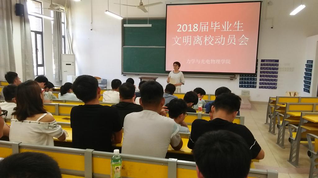 为切实做好2018届毕业生文明离校工作,力物学院于4月底至6月中旬开展了丰富多彩的毕业生文明离校教育系列活动。