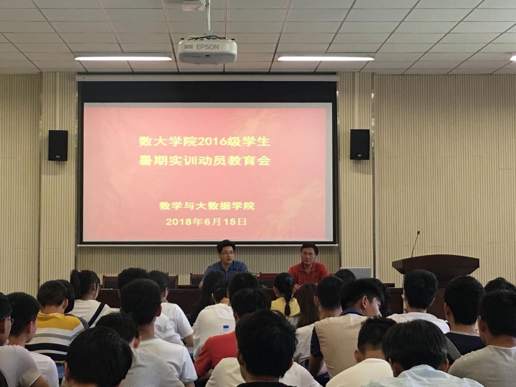 6月15日,数大学院在学院楼一楼报告厅举行全体2016级学生暑期实训动员会。院长方贤文等领导以及2016级辅导员参加会议。