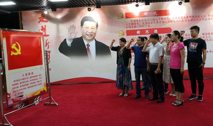 在鲜红的党旗下,党员们庄重地举起了右手,重温入党誓词。大家表示,作为一名光荣的共产党员,要继承和弘扬党的光荣传统和优良作风,不忘入党时的初心,始终保持党员的纯洁性和先进性,率先垂范,争当表率,在平凡的岗位中贡献自己的力量。