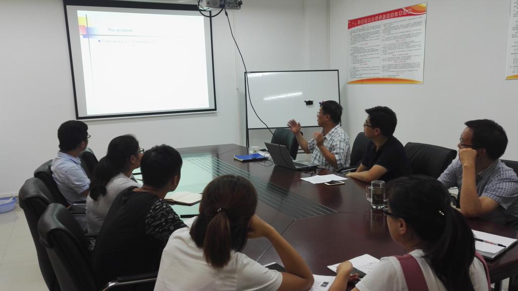 报告中,赖虹建教授重点介绍了应用图的邻接矩阵特征根来刻画图的拓扑结构及其性质的研究思路与方法,重点介绍了其课题组在这一方面的最新系列进展。报告内容详实丰富,讲解深入浅出、生动风趣。赖虹建教授还与相关领域的师生进行了充分交流讨论,并就相关研究问题提出了建设性建议。与会研究生纷纷表示受益匪浅,开拓了科研视野。