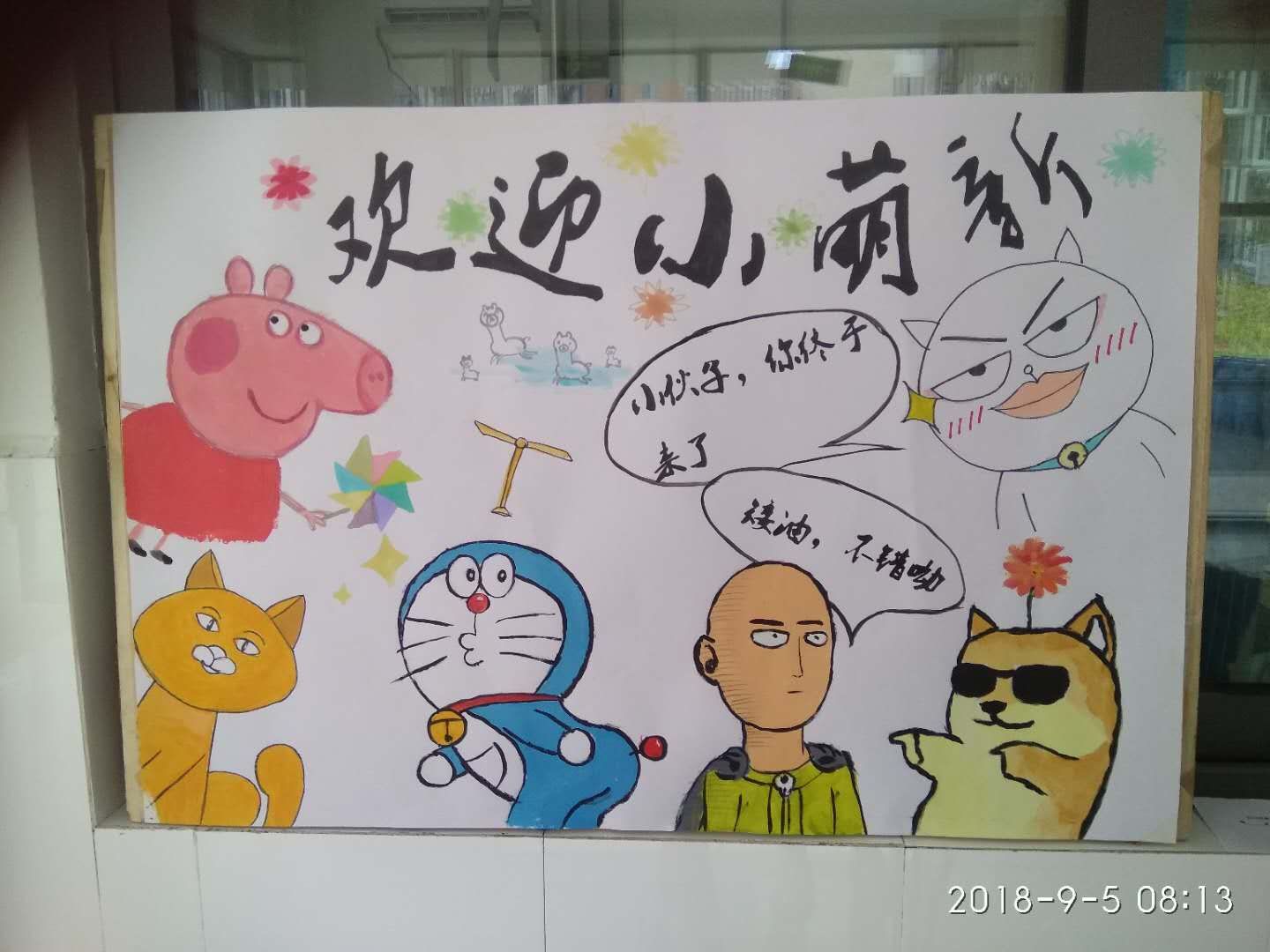 宿管阿姨制作的迎新海报“欢迎小萌新”。