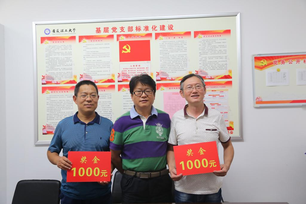 9月12日下午,校工会在行政楼904室对2018年子女参加高考取得我校文理科第一名的教职工进行了奖励。校工会主席李广田、副主席陈忠琴、我校高考文理科第一名的家长和工会有关人员参加了活动。