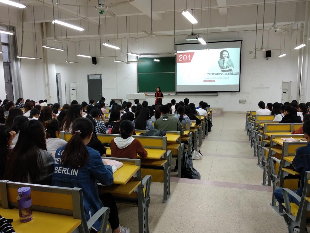 作为经管学院首届市场营销专业的毕业生,王秀丽以“一个经管学院女生的创业之路”为主题,从认识自我、明确方向、工作历程和成长经验四个方面,结合亲身经历向同学们诠释了树立了正确的价值观和就业观的重要性,并用一个个生动的实例,将自己十几年的创业经历娓娓道来。她表示,充实自己、提高专业技能、拓宽自己的知识面和丰富精神世界是十分必要的。在学生提问环节,王秀丽就同学们如何更加充实地度过大学生活、怎样面对大学毕业的选择等问题作了解答。