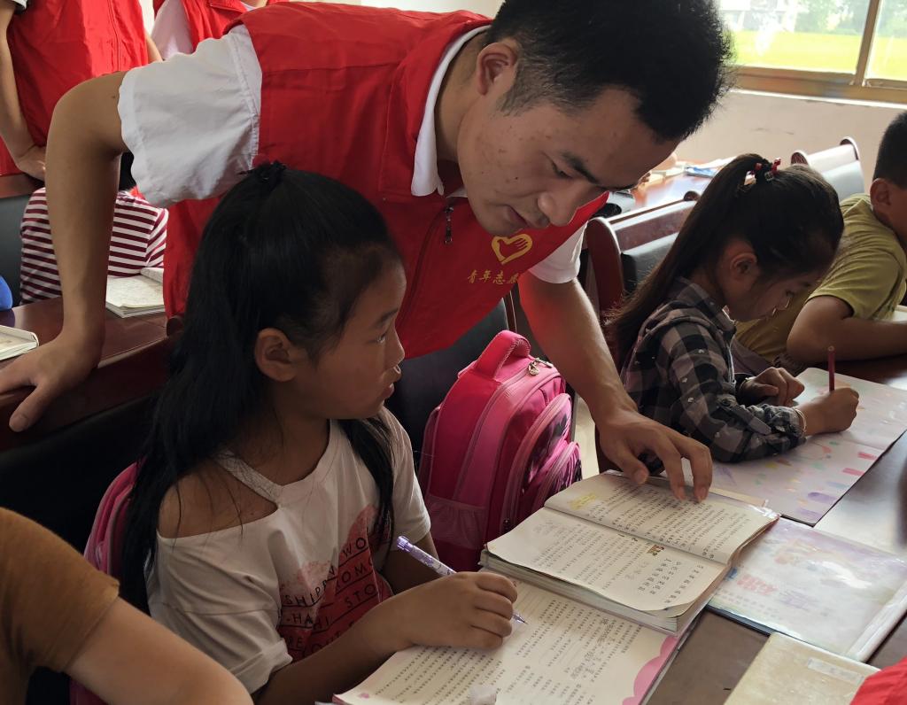 化工学院志愿者帮扶孩子温习功课(摄影:张鸿宇)
