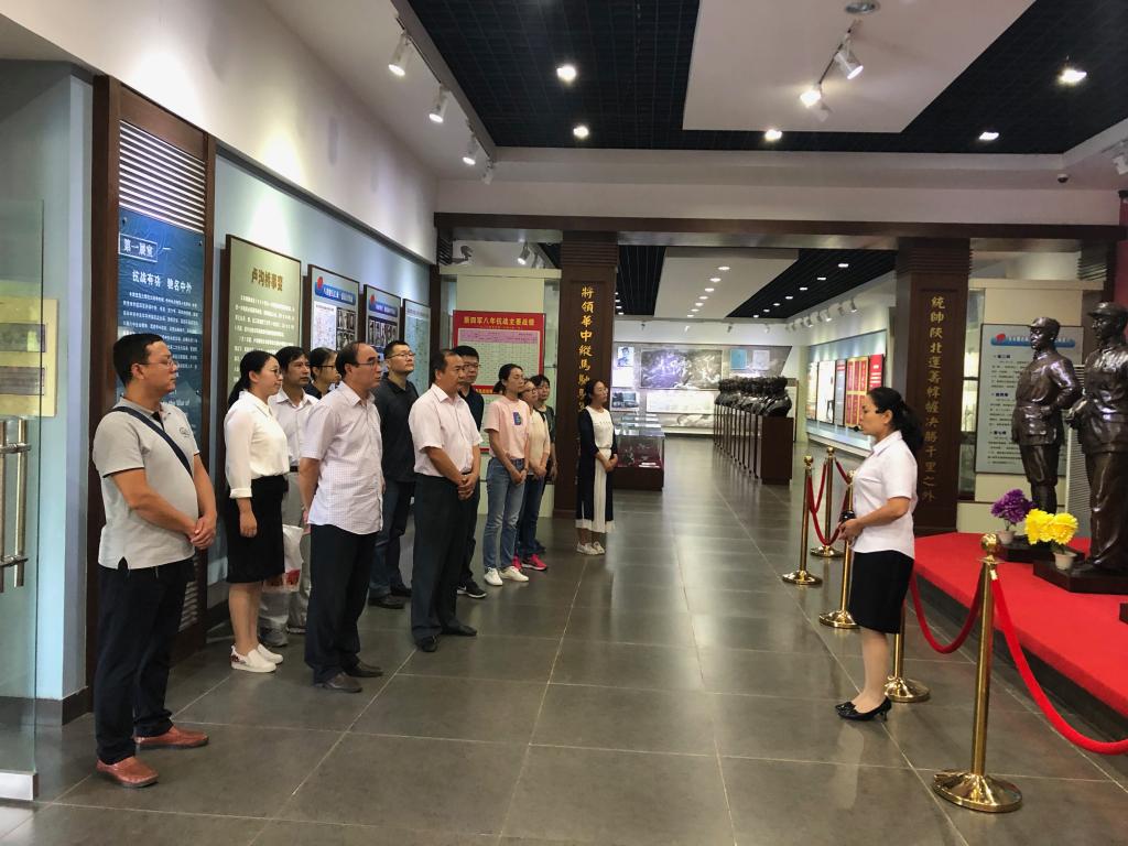 随后,大家参观了新四军陈列馆,在讲解员的引导下,大家先后瞻仰了毛泽东、周恩来、朱德、刘少奇、陈毅、叶挺等老一辈无产阶级革命家和先烈的铜像,参观了一个个饱含奋斗精神的英雄遗物陈列柜,观看了一幅幅生动的新四军革命历史图片。一段段鲜活的文字记载,揭示了侵华日军在淮南及周边犯下的滔天罪行,一篇篇荡气回肠的事迹介绍,图文并茂地讲述了新四军生生不息、英勇顽强的光辉抗战历史和英雄的淮南儿女不畏强敌、浴血奋战的爱国情怀,给大家上了一堂生动的爱国主义教育课。