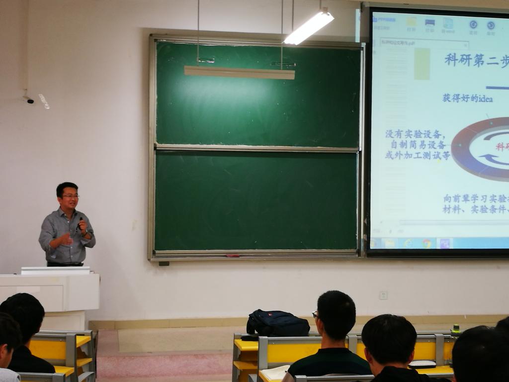 朱光教授主要从事新能源材料与器件方向的研究。近年来,作为第一作者/通讯作者在国际知名期刊发表SCI学术论文37篇,英文编著1部。报告会上,朱光结合自己的科研经历,从“科研是什么,怎样获得好的idea?”引入本场学术报告,指出做好科研最关键的一步是大量的文献阅读和时刻关注国际科研动态,详细阐述如何去做好实验、如何去写好科研论文以及如何去投稿和修改稿件。朱光教授语言幽默生动,在报告中与师生积极互动。同学们踊跃提问,就感兴趣的研究课题和论文写作方面与他进行了深入的交流。