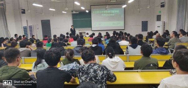 为加强学风建设,激励大一新生确立正确的学习目标,10月30日晚,机械工程学院在天工104教室举办优秀校友交流报告会,邀请学院机械设计制造及其自动化专业2009届优秀毕业生、柳工集团实验部部长高虎成担任主讲。2018级新生各班级代表参会。