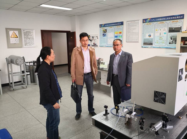 在安徽光学精密机械研究所,双方就所关心的项目合作以及科研项目联合申报等问题进行了深入探讨。会后周孟然一行参观了环境光学研究中心的TDLAS、FTIR、紫外可见光谱等实验室,详细了解了该研究中心在科研项目申请以及科研成果转化等方面的理念和做法。此次合作洽谈为学院与科研院所合作提供了新思路,达到了预期目的,为进一步做好学院的重大科研项目联合申报提供了经验和启示。