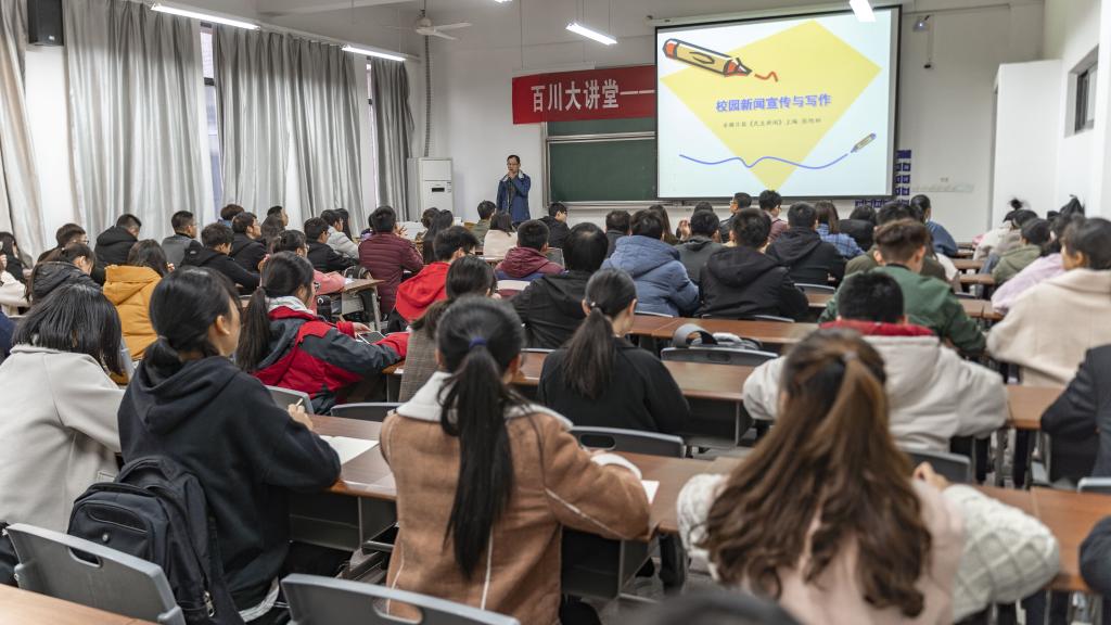 校报学生记者、广播站编播员、新媒体人员、部分学院通讯社成员以及广大新闻爱好者近百余人聆听了讲座。