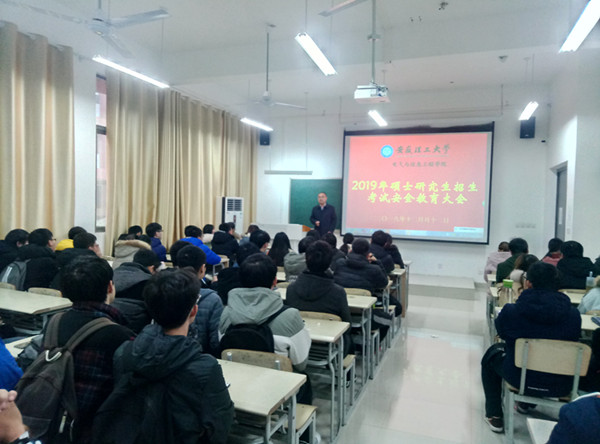 11月12日下午,电气与信息工程学院在学院C103教室召开硕士研究考试安全教育会,会议由学院执行院长周孟然主持,毕业班辅导员和70余名考研学生代表参加了会议。
