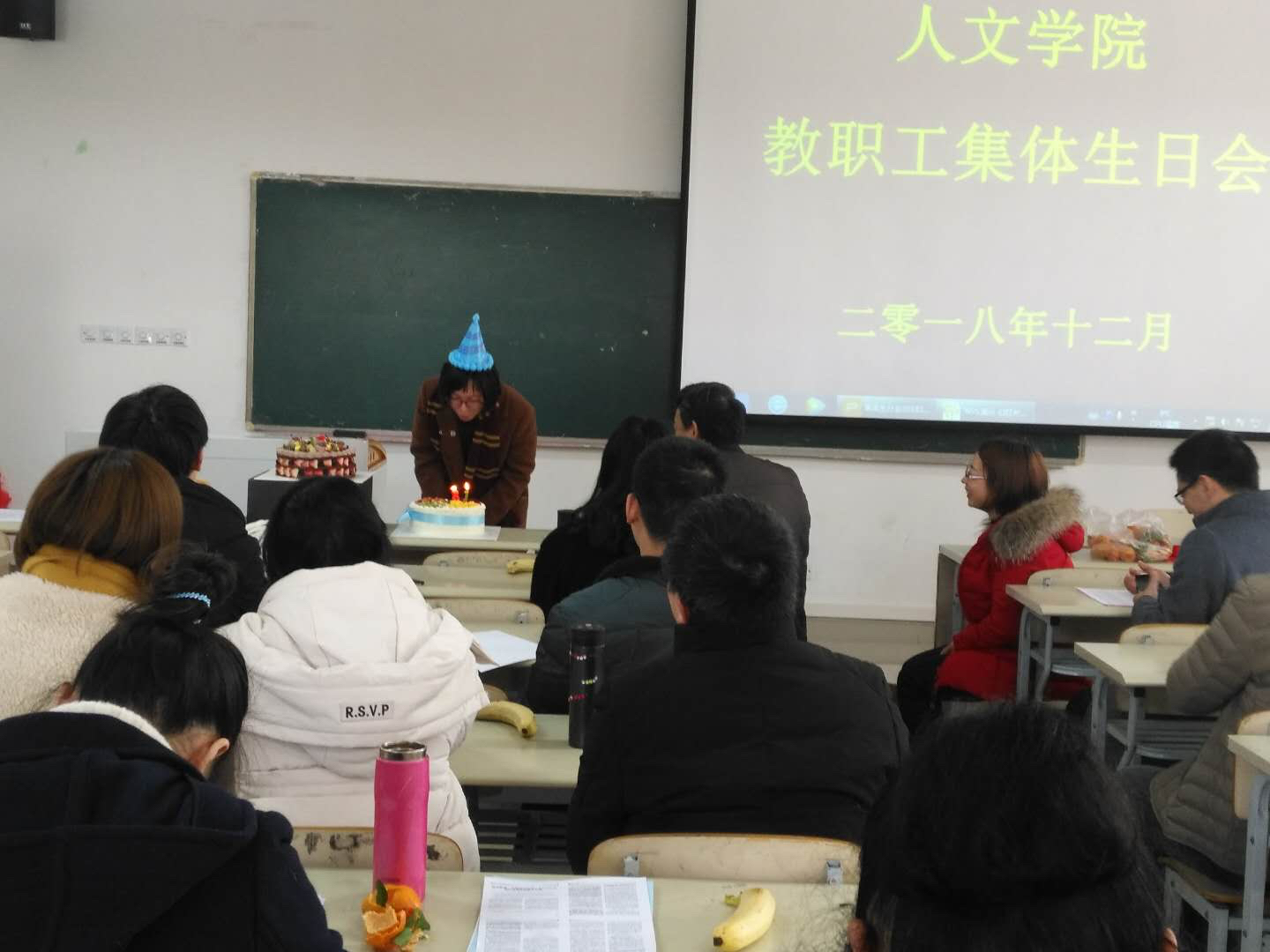 12月14日上午,人文社会科学学院在学院A333教室举办2018年教职工集体生日会。学院党政领导和全体教师参加了集体生日会。