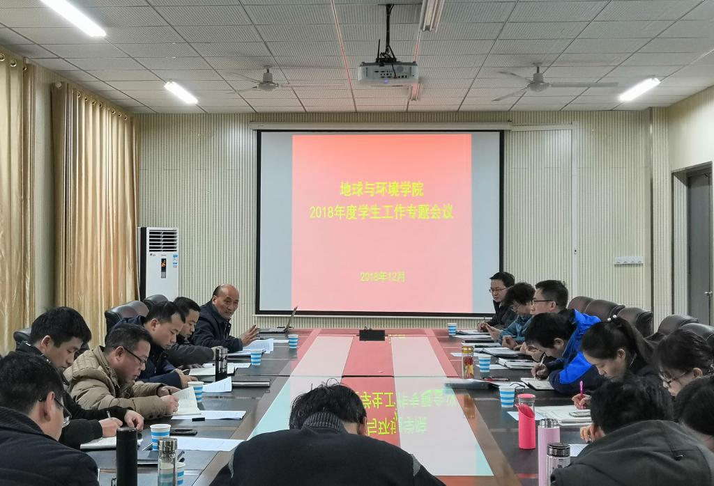 12月27日下午,地球与环境学院在静远楼414会议室召开学生工作专题会议,研讨学风建设等学生工作。学院党政领导,各系主任,全体辅导员和2018级班主任参加会议。