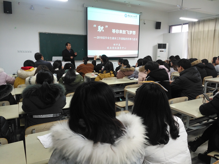 为加强对2019届毕业生就业的针对性指导,12月27日下午,人文社会科学学院主办的“‘职’等你来放飞梦想”讲座在崇智楼A333教室成功举办。此次就业指导讲座特邀安徽理工大学就业创业处处长田中良担任主讲人,讲座由人文学院党总支书记吴云平主持。2015级、2016级部分学生参加了讲座。