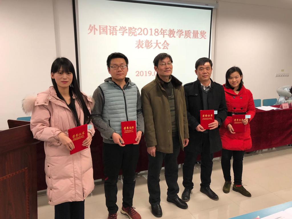 1月11日下午,外国语学院在崇智楼B229教室召开全院教师代表大会,对2018年教学工作表现突出的教师进行表彰,为他们颁发2018年度学院教学质量奖。