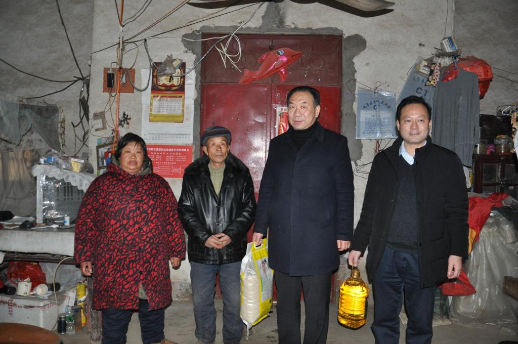 春节将至,为具体落实扶贫政策,做好结对帮扶,1月28日,化学工程学院党委书记王大贤、副院长(主持工作)邢宏龙赴毛集实验区焦岗湖镇孙台村,向结对帮扶贫困户和驻村扶贫干部送去新春问候和慰问品,并商议下一步具体扶贫措施。