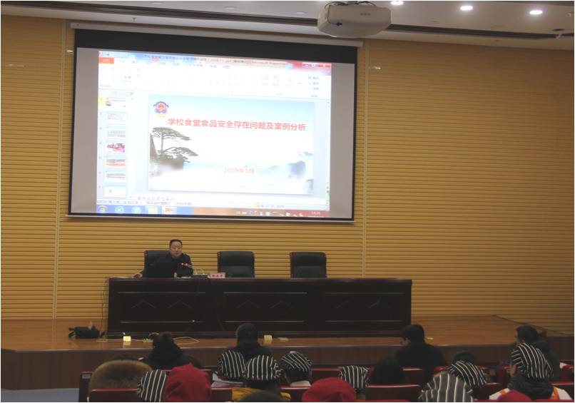 2月21日下午,后勤保障处在国家重点实验室一楼报告厅召开会议,邀请田家庵区市场监督管理局党委委员、主任科员职东平,三和镇食药所所长王晓蓓为我校食堂从业人员进行食品安全培训。培训会由后勤保障处副处长林浩伟主持。